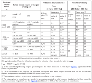 ในเอกสารของ Stamford, AGM 008 ISSUE C/1/9 กล่าวไว้เกี่ยวกับ ISO8528-9 ที่อธิบายการวิเคราะห์การสั่นสะเทือนไว้ได้เป็นอย่างดี และได้กำหนดขอบเขตพิกัดของค่าการสั่นสะเทือนที่แนะนำอยู่ในรูปของ U-Shape ดังรูป